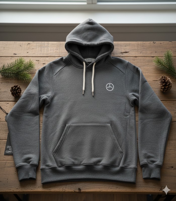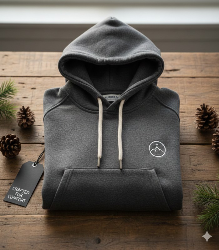 The Aurora Classic Pullover Hoodie | Charcoal Grey Fleece with Mountain Star Logo
