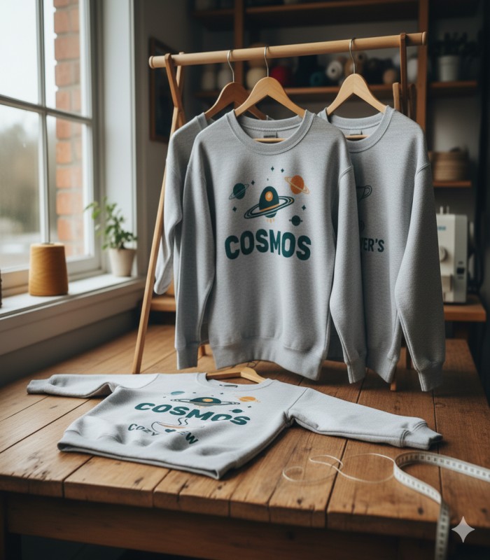 The COSMOS Graphic Crewneck Sweatshirt | Grey Fleece with Space-Themed Print